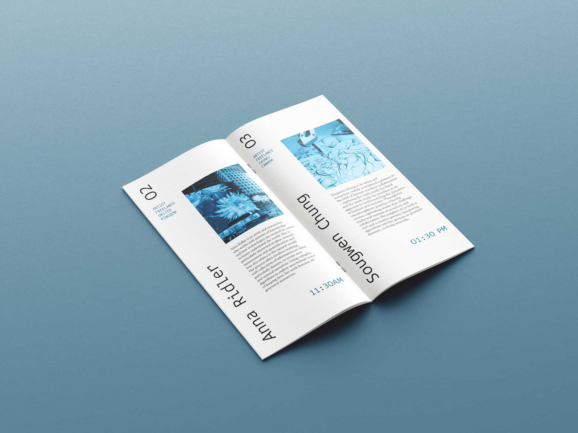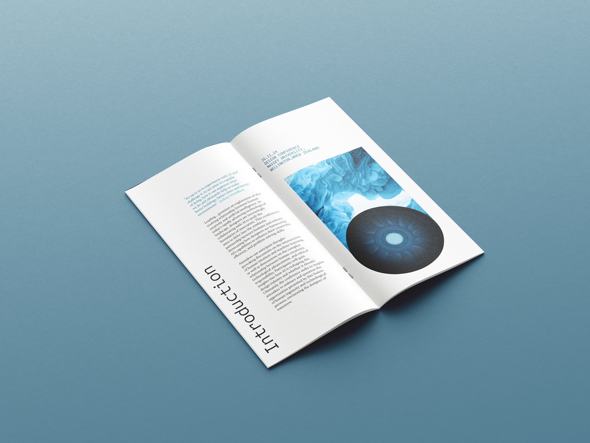 In developing this project I wanted to capture the cross section between human and robot. The use of the human embryo - a distinct symbol of life - contrasted with the recognisable iPhone camera and “tech blue” colour creates an uncanny feeling of the birth of something unknown. This balance between human and robot is also reflected in the typography used in the printed materials. The display font used is a monospaced type that is reminiscent of the early days of technology, while the body copy showcases a more humanist serif.