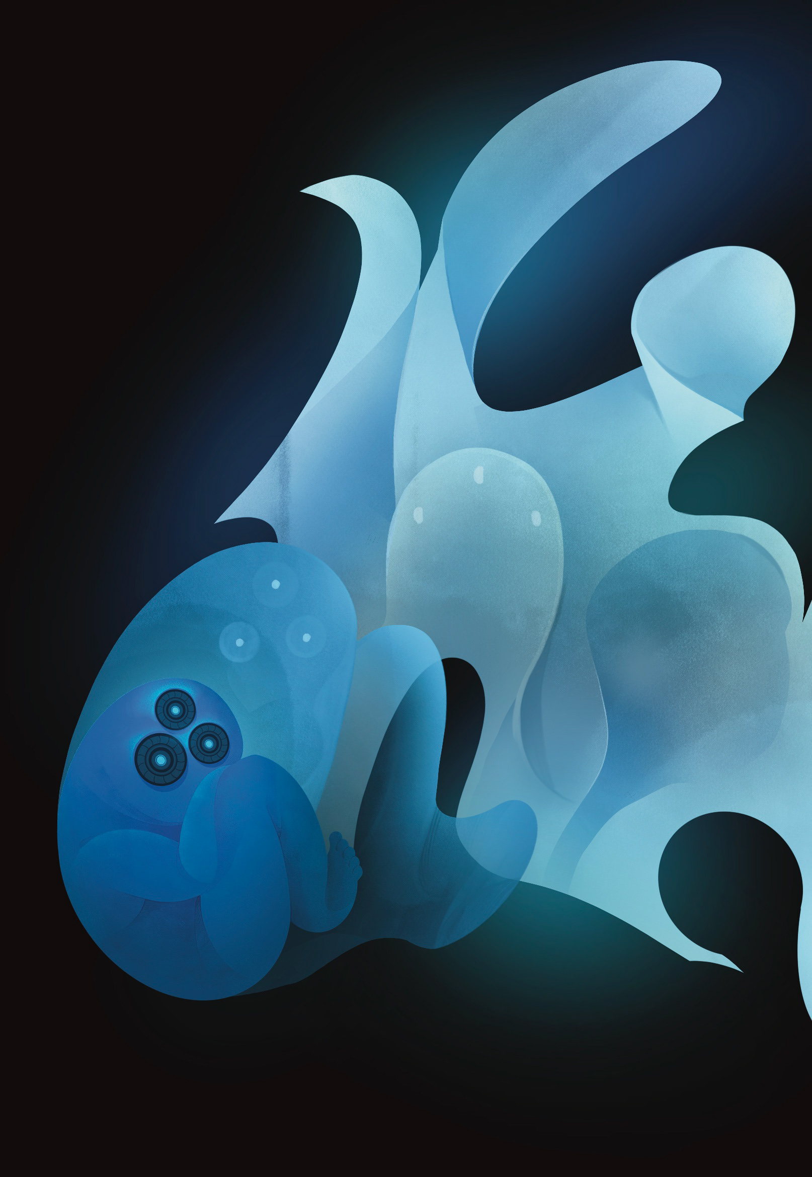 In developing this project I wanted to capture the cross section between human and robot. The use of the human embryo - a distinct symbol of life - contrasted with the recognisable iPhone camera and "tech blue" colour creates an uncanny feeling of the birth of something unknown. This balance between human and robot is also reflected in the typography used in the printed materials. The display font used is a monospaced type that is reminiscent of the early days of technology, while the body copy showcases a more humanist serif.