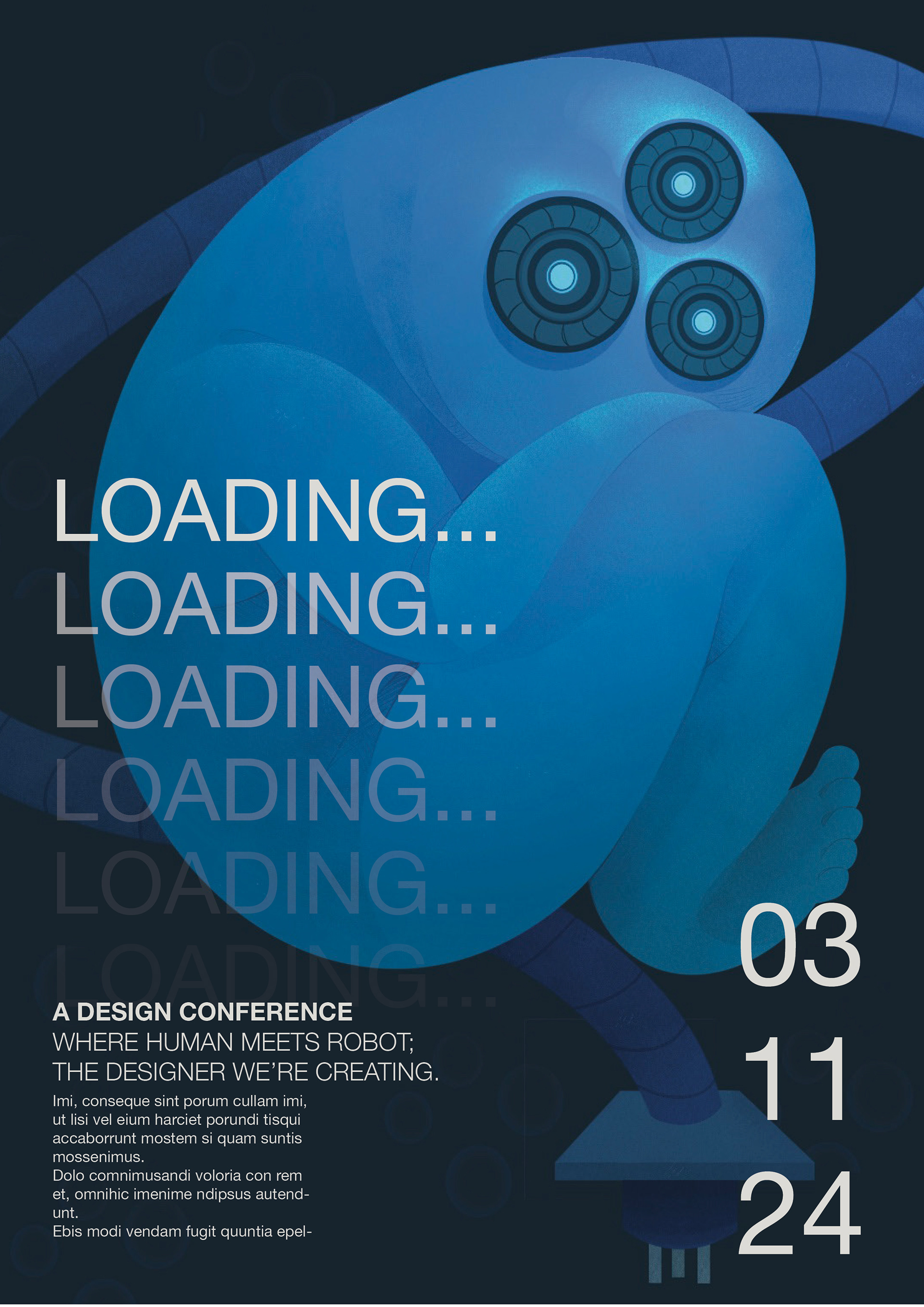 Loading... is a hypothetical design conference exploring the of the evolving relationship between human creativity and AI. In today’s evolving technological landscape, designers are making increasing use of AI to push the boundaries of innovation. This conference will delve into the ethics of this symbiotic partnership, questioning how, and if we should be harnessing AI’s capabilities in design.